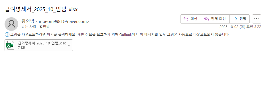 이메일에 첨부된 메일 다운로드
